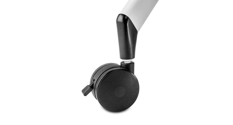 | Casters | Black, dual wheel, locking |